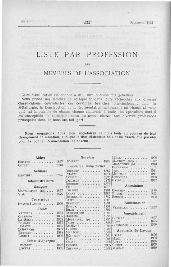 Association des Anciens Elèves de l'Ecole Centrale Lyonnaise, Décembre 1922, 264 pages