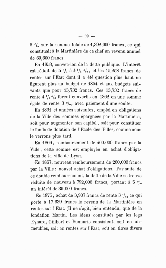 Chapitre IX. - Historique financier de la Martinière. Ressources et budget de l'Institution