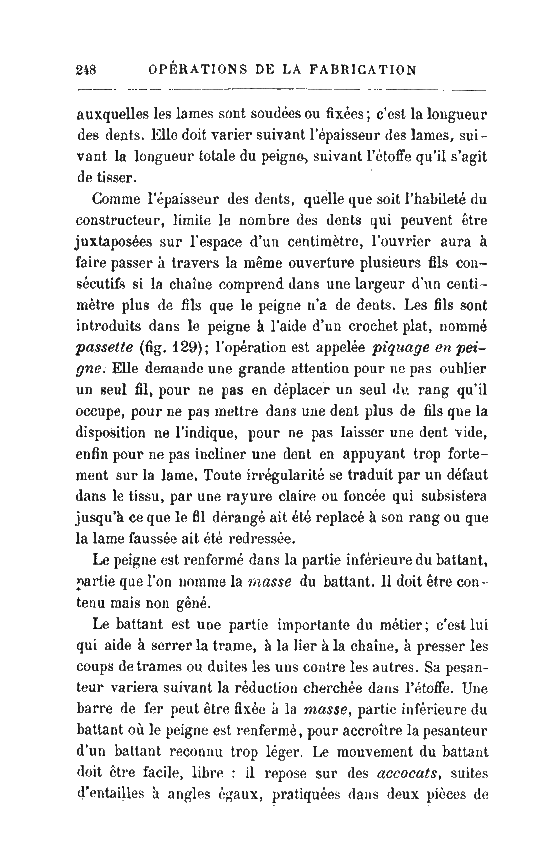 I. Classification générale : deux classes, soieries pures, soieries mélangées; deux familles, soieries unies, soieries façonnées ; quatre genres des unis, taffetas, sergés, satins, velours; quatre genres des façonnés, damas, brocatelles, lampas, droguets. - Classification par les dessins : période byzantine, période arabe, période italienne, période française