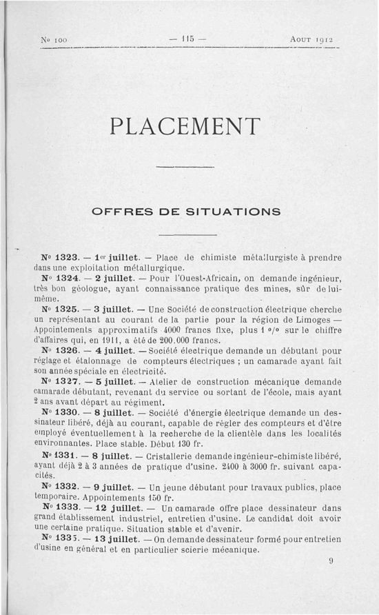 Association des Anciens Eleves de l'Ecole Centrale Lyonnaise, Août 1912, 120 pages