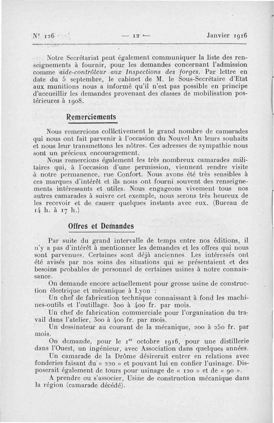 Association des Anciens Eleves de l'Ecole Centrale Lyonnaise, Janvier 1916, 44 pages