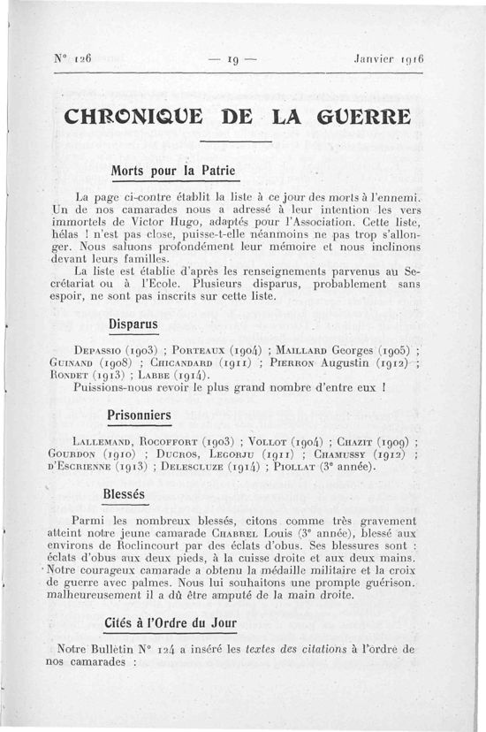 Association des Anciens Eleves de l'Ecole Centrale Lyonnaise, Janvier 1916, 44 pages
