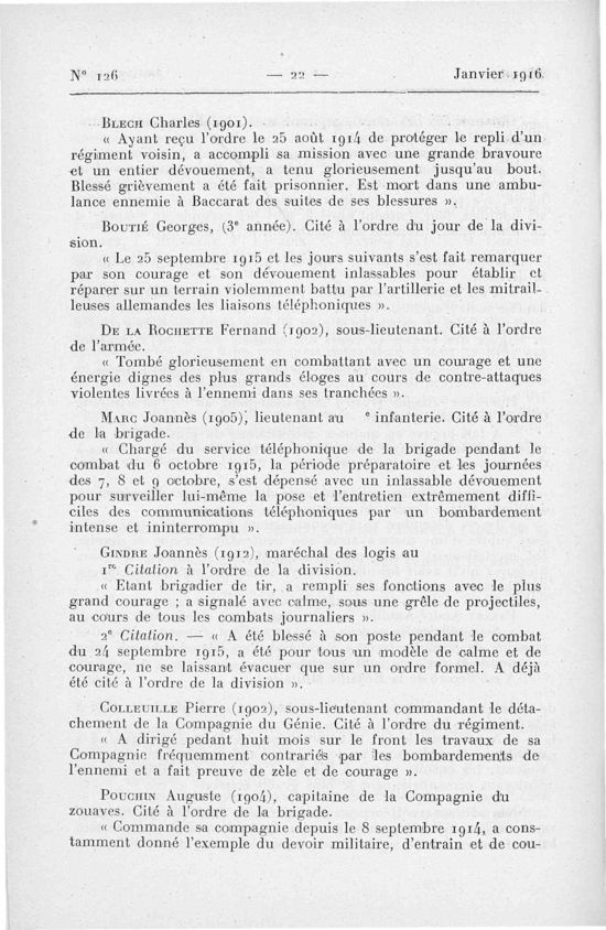Association des Anciens Eleves de l'Ecole Centrale Lyonnaise, Janvier 1916, 44 pages
