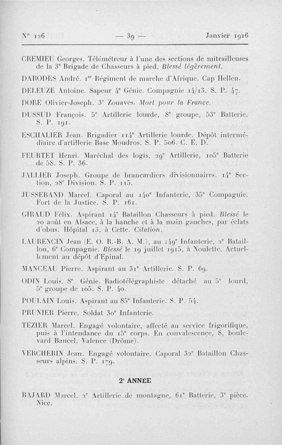 Association des Anciens Eleves de l'Ecole Centrale Lyonnaise, Janvier 1916, 44 pages