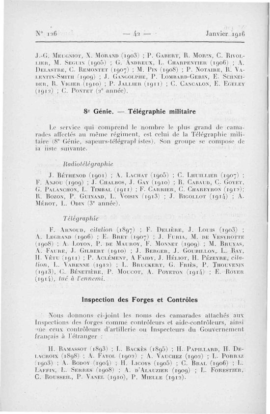 Association des Anciens Eleves de l'Ecole Centrale Lyonnaise, Janvier 1916, 44 pages