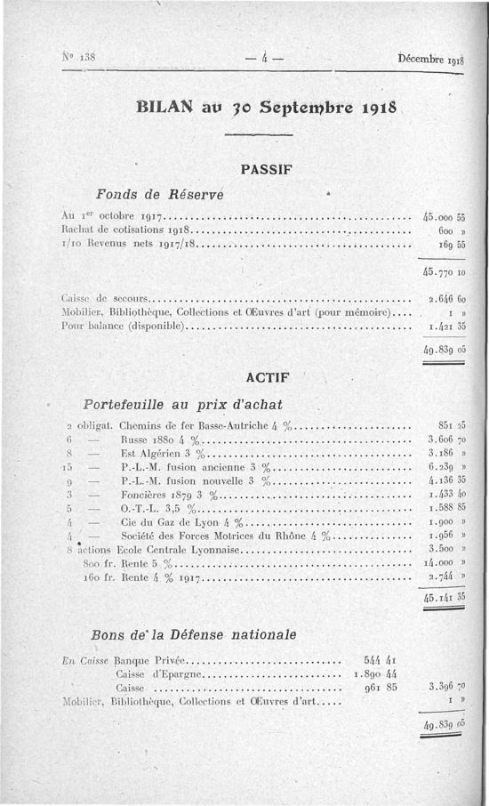 Association des Anciens Eleves de l'Ecole Centrale Lyonnaise, Décembre 1918, 46 pages
