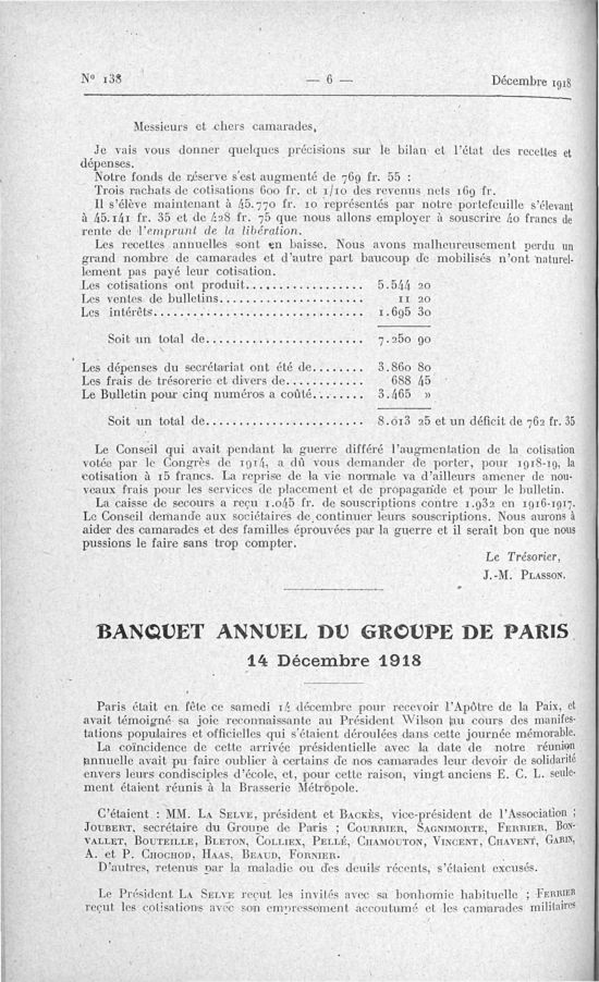 Association des Anciens Eleves de l'Ecole Centrale Lyonnaise, Décembre 1918, 46 pages