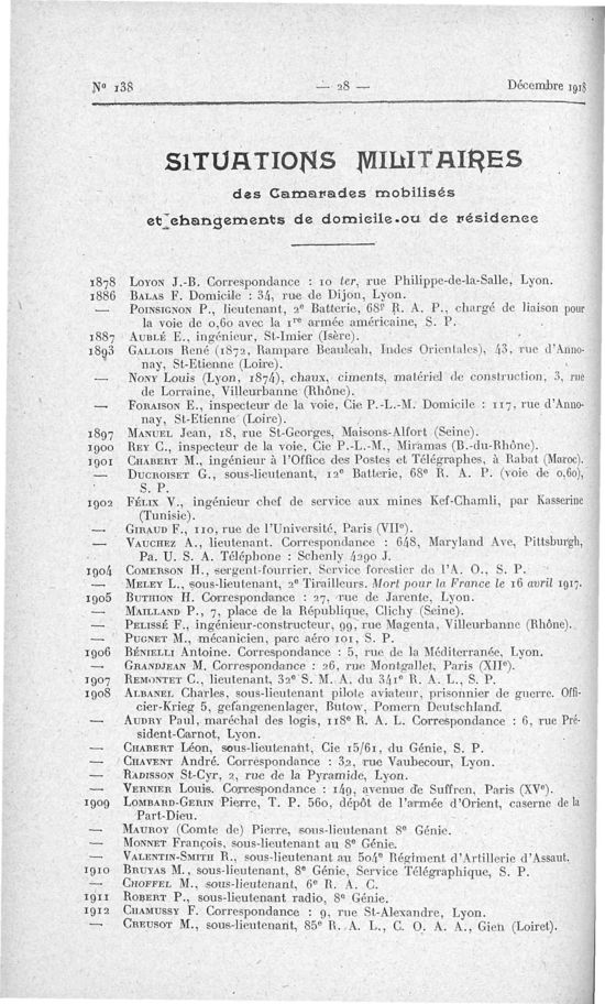 Association des Anciens Eleves de l'Ecole Centrale Lyonnaise, Décembre 1918, 46 pages