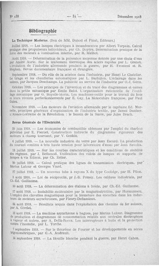 Association des Anciens Eleves de l'Ecole Centrale Lyonnaise, Décembre 1918, 46 pages