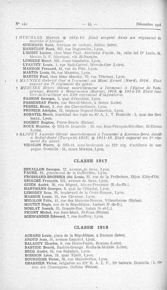 Association des Anciens Eleves de l'Ecole Centrale Lyonnaise, Décembre 1918, 46 pages
