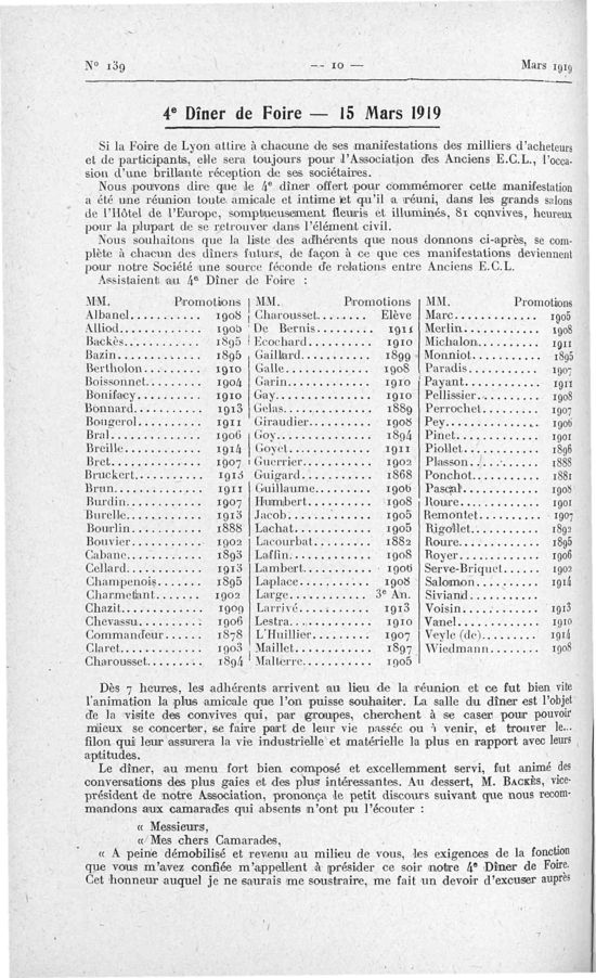 Association des Anciens Eleves de l'Ecole Centrale Lyonnaise, Mars 1919, 48 pages