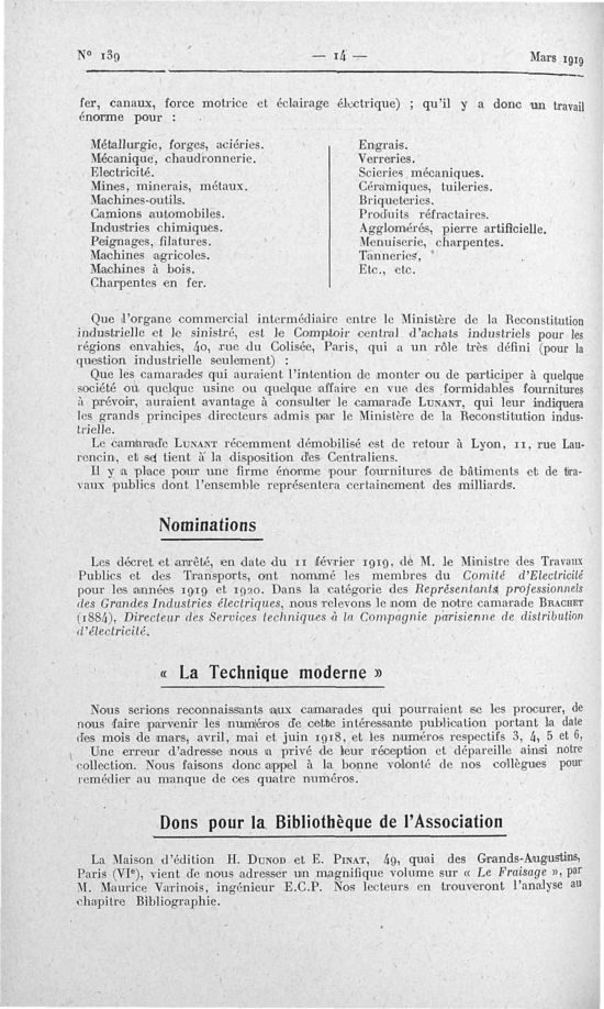 Association des Anciens Eleves de l'Ecole Centrale Lyonnaise, Mars 1919, 48 pages