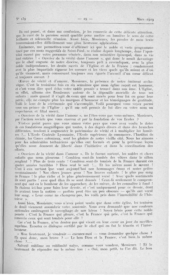 Association des Anciens Eleves de l'Ecole Centrale Lyonnaise, Mars 1919, 48 pages
