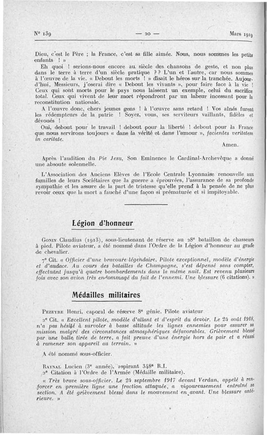 Association des Anciens Eleves de l'Ecole Centrale Lyonnaise, Mars 1919, 48 pages