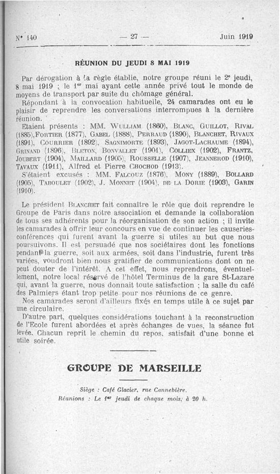 Association des Anciens Eleves de l'Ecole Centrale Lyonnaise, Juin 1919, 44 pages