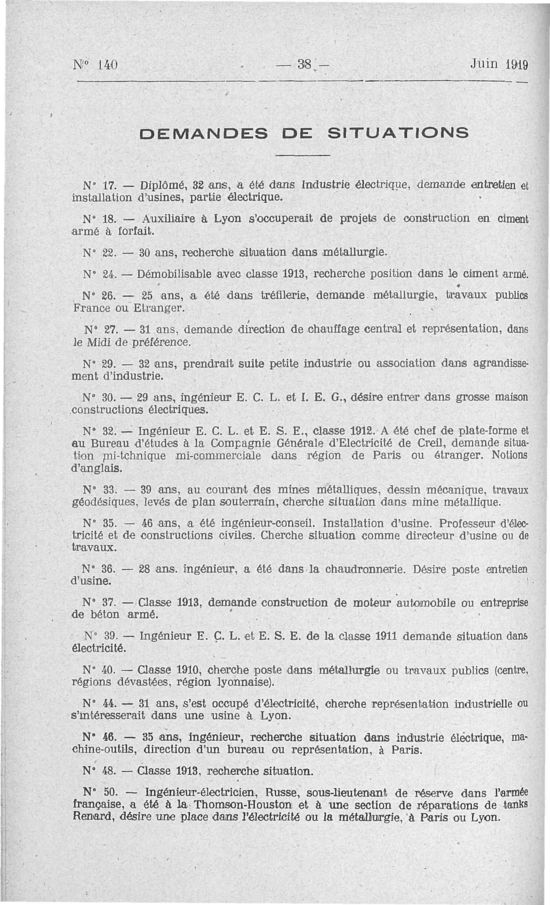 Association des Anciens Eleves de l'Ecole Centrale Lyonnaise, Juin 1919, 44 pages