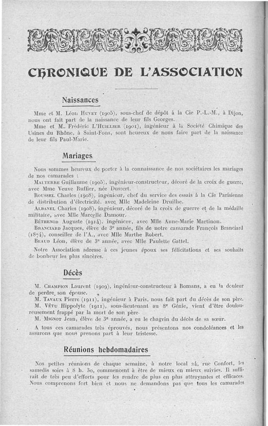 Association des Anciens Eleves de l'Ecole Centrale Lyonnaise, Août 1919, 24 pages