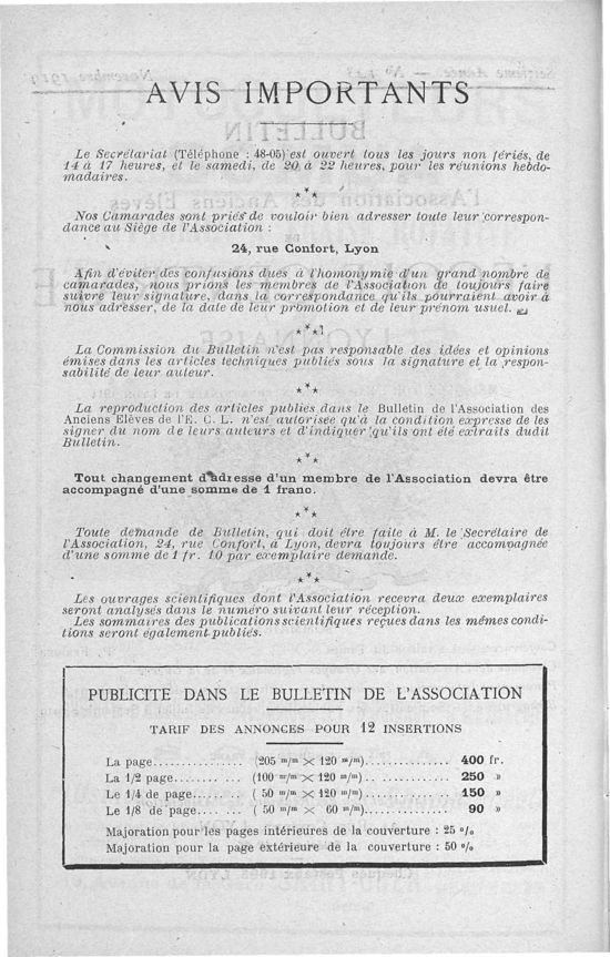 Association des Anciens Eleves de l'Ecole Centrale Lyonnaise, Novembre 1919, 36 pages