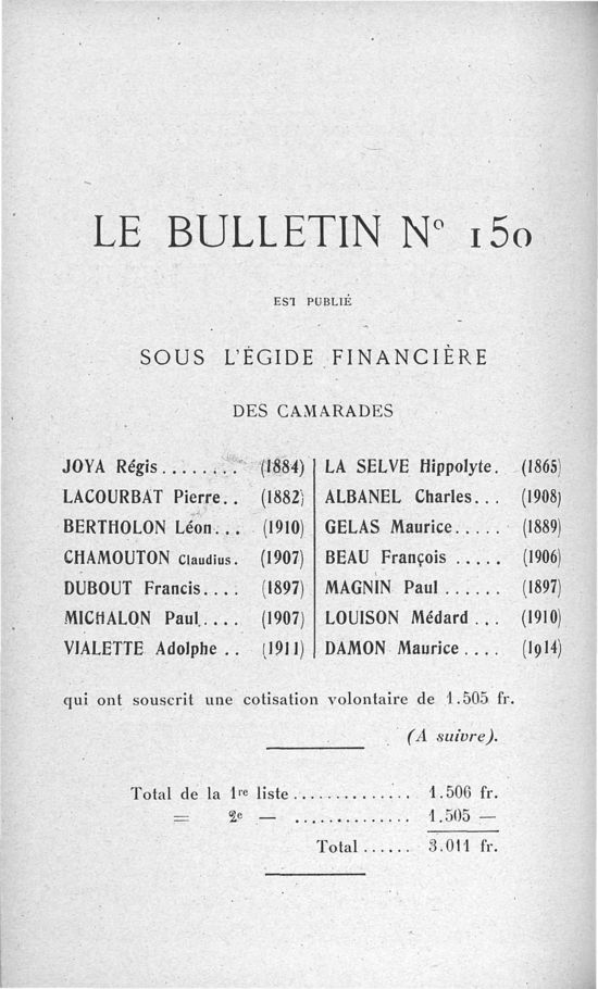 Félicitations aux jeunes promotions 1913, 1914 et 1920