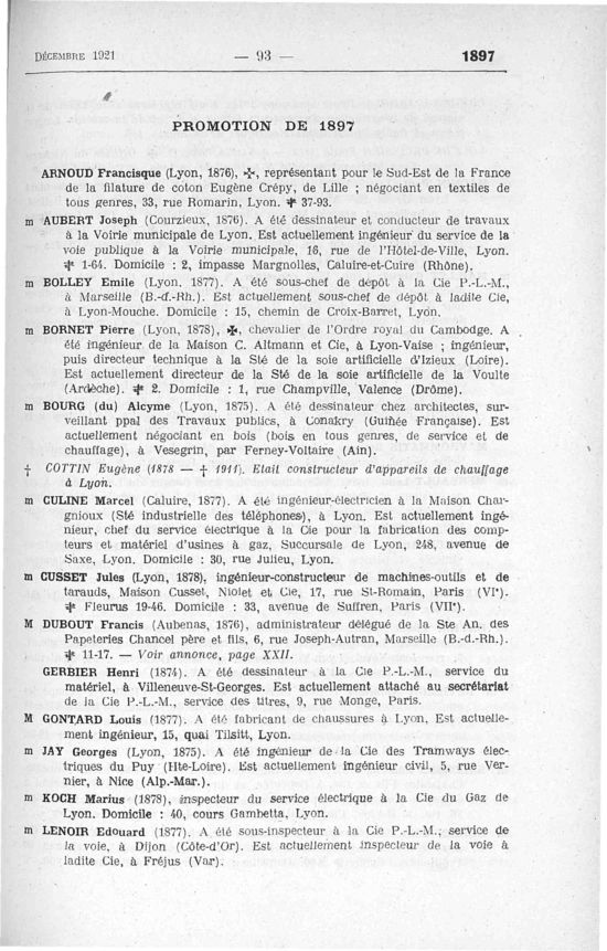 Association des Anciens Elèves de l'Ecole Centrale Lyonnaise, Décembre 1921, 220 pages