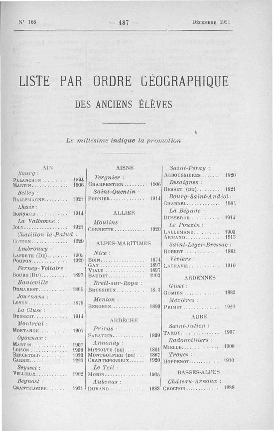 Association des Anciens Elèves de l'Ecole Centrale Lyonnaise, Décembre 1921, 220 pages