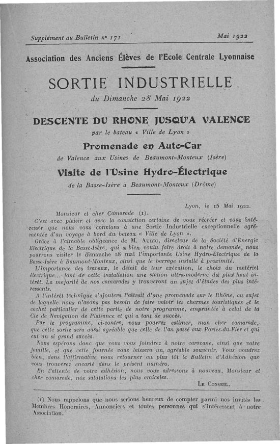 Association des Anciens Elèves de l'Ecole Centrale Lyonnaise, Mai 1922, 48 pages