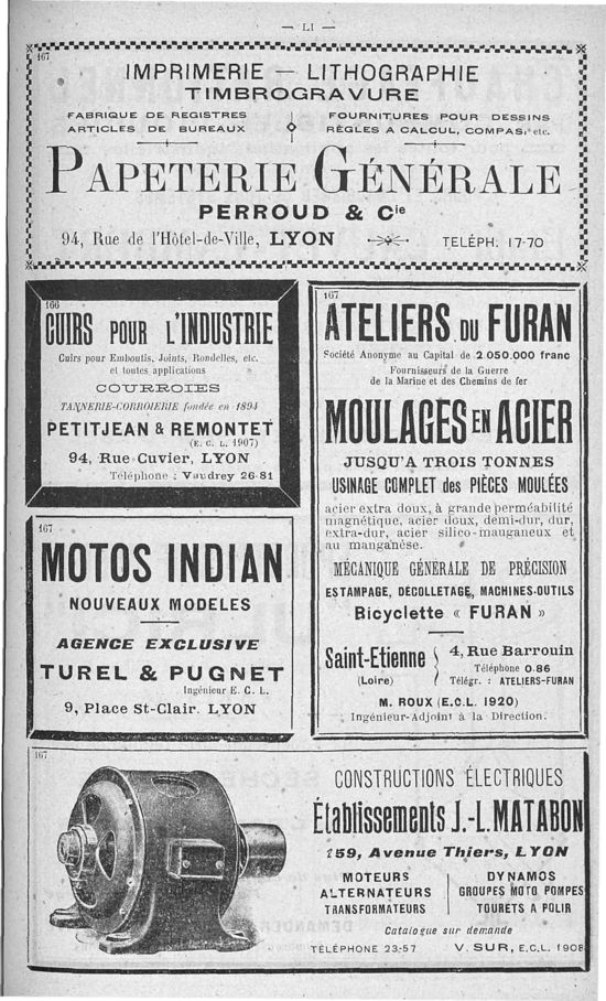 Association des Anciens Elèves de l'Ecole Centrale Lyonnaise, Mai 1922, 48 pages