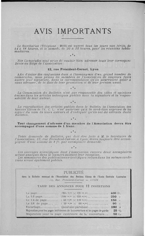 Association des Anciens Elèves de l'Ecole Centrale Lyonnaise, Juin 1923, 56 pages