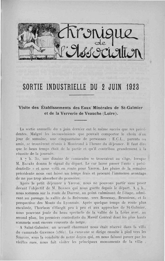Association des Anciens Elèves de l'Ecole Centrale Lyonnaise, Juin 1923, 56 pages
