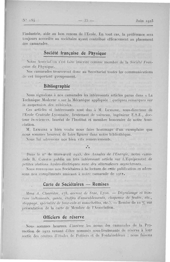 Association des Anciens Elèves de l'Ecole Centrale Lyonnaise, Juin 1923, 56 pages