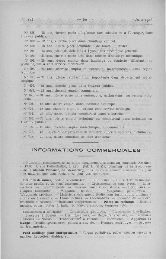 Association des Anciens Elèves de l'Ecole Centrale Lyonnaise, Juin 1923, 56 pages