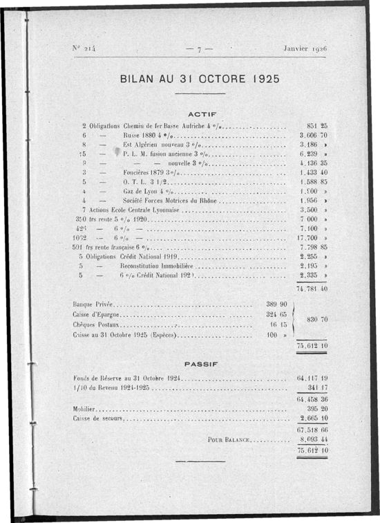 Association des Anciens Eleves de l'Ecole Centrale Lyonnaise, Janvier 1926, 64 pages