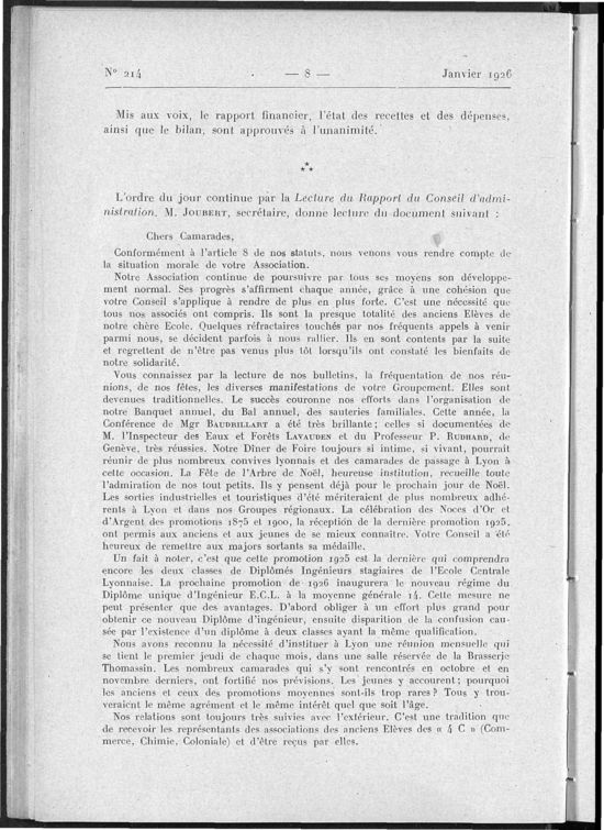 Association des Anciens Eleves de l'Ecole Centrale Lyonnaise, Janvier 1926, 64 pages
