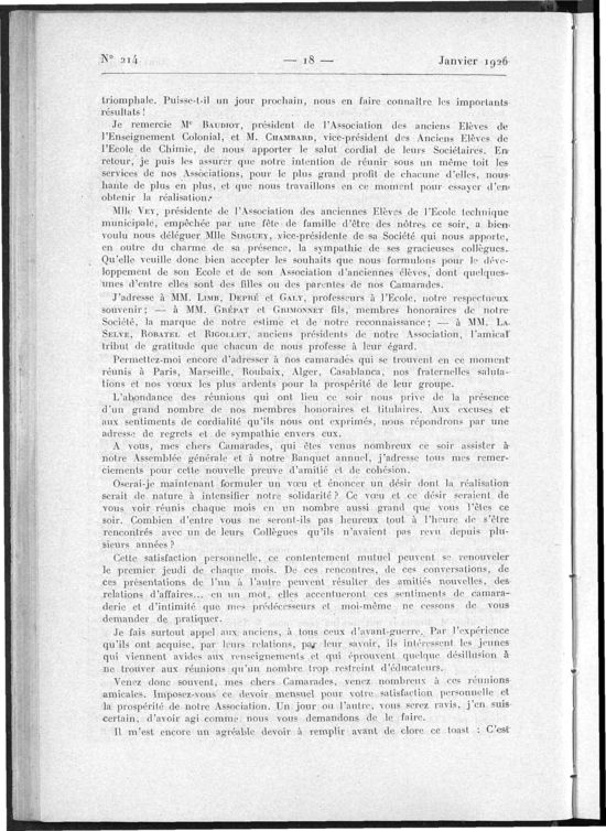 Association des Anciens Eleves de l'Ecole Centrale Lyonnaise, Janvier 1926, 64 pages