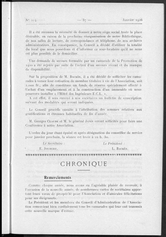 Association des Anciens Eleves de l'Ecole Centrale Lyonnaise, Janvier 1926, 64 pages
