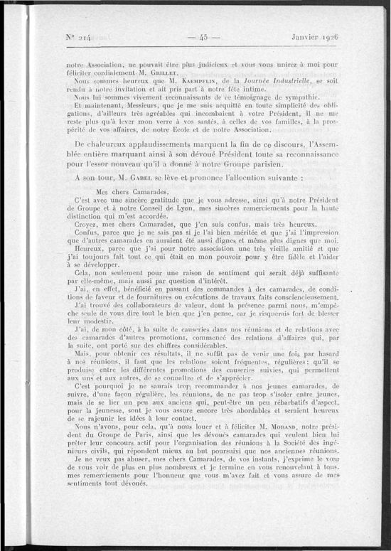 Association des Anciens Eleves de l'Ecole Centrale Lyonnaise, Janvier 1926, 64 pages