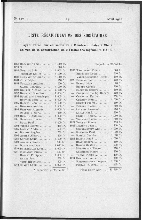 Association des Anciens Eleves de l'Ecole Centrale Lyonnaise, Avril 1926, 48 pages