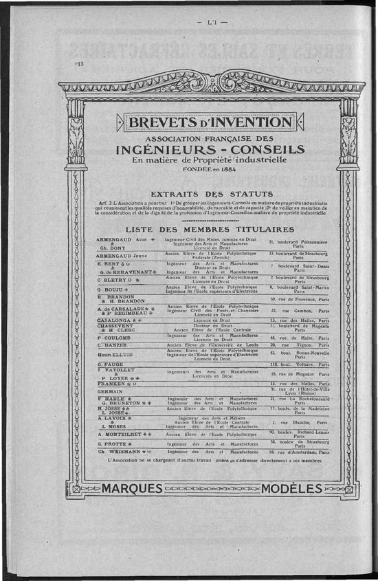 Association des Anciens Eleves de l'Ecole Centrale Lyonnaise, Avril 1926, 48 pages