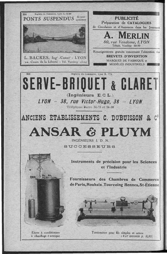 Association des Anciens Eleves de l'Ecole Centrale Lyonnaise, Avril 1926, 48 pages
