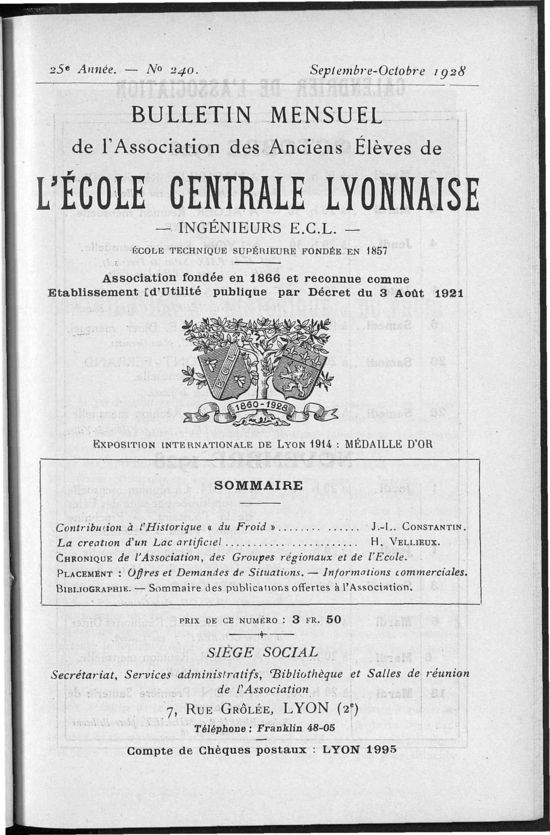 Bulletin mensuel de l'Association des Anciens Elèves de l'Ecole Centrale Lyonnaise