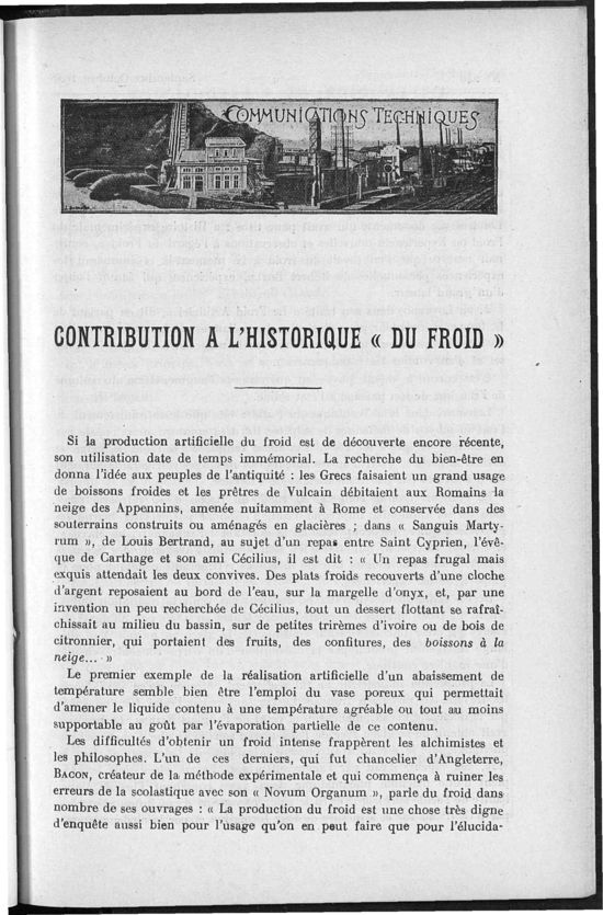 Article - Contribution à l'Historique "du froid" par Jean-Louis Constantin