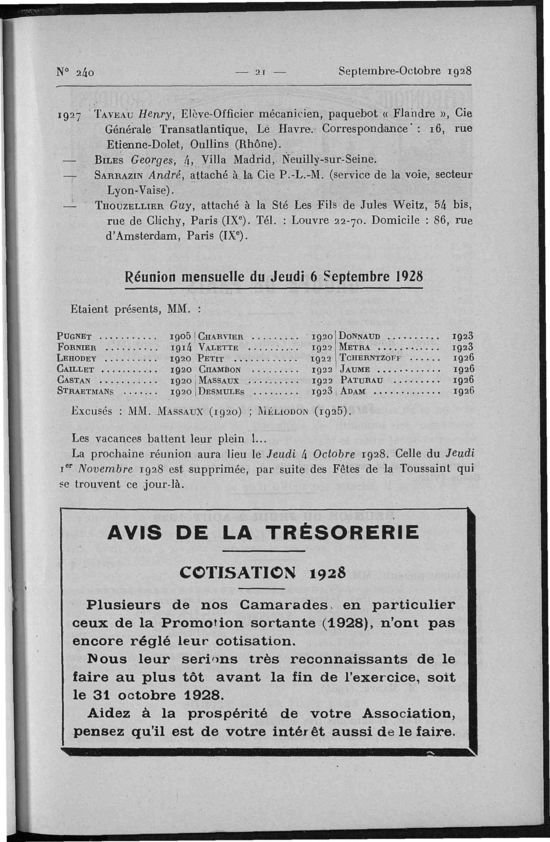 Réunion du jeudi 6 septembre 1928