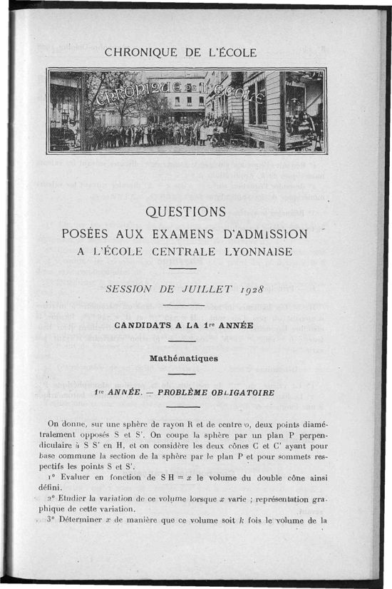 Questions posées aux examens d'admission à l'Ecole Centrale Lyonnaise