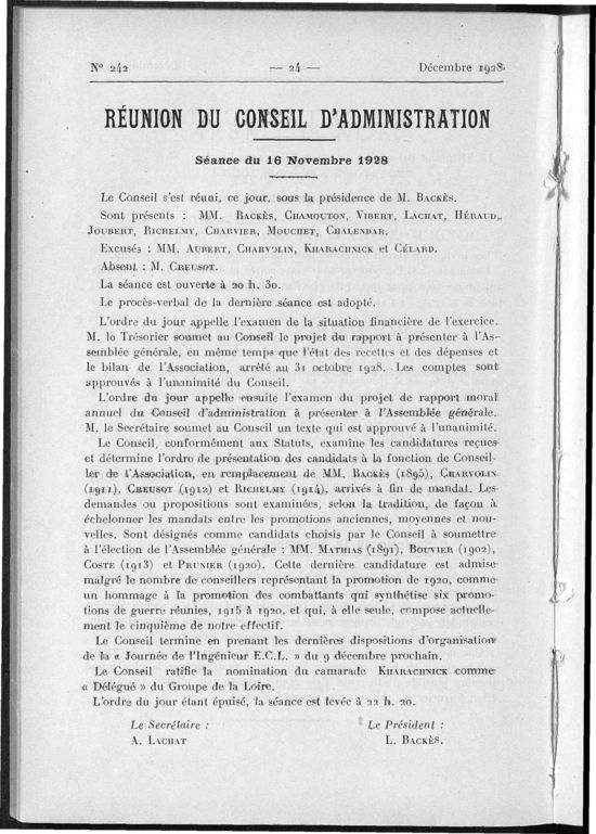 Association des Anciens Eleves de l'Ecole Centrale Lyonnaise, Décembre 1928, 48 pages