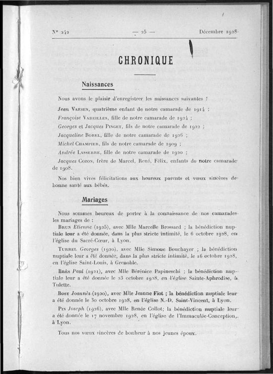 Association des Anciens Eleves de l'Ecole Centrale Lyonnaise, Décembre 1928, 48 pages