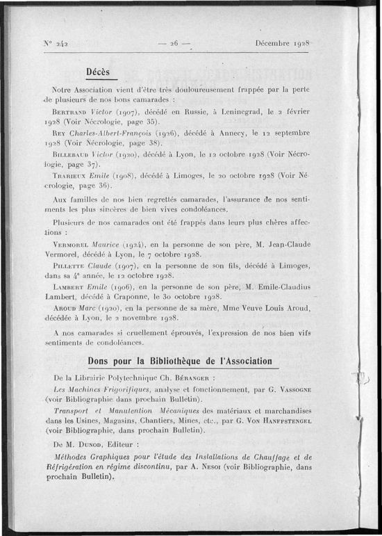 Association des Anciens Eleves de l'Ecole Centrale Lyonnaise, Décembre 1928, 48 pages
