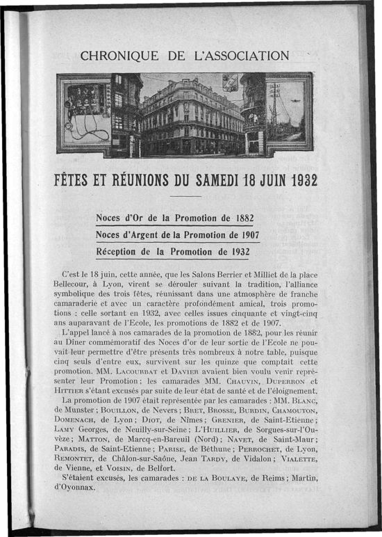 Association des Anciens Elèves de l'Ecole Centrale Lyonnaise, Juillet-Août 1932, 56 pages