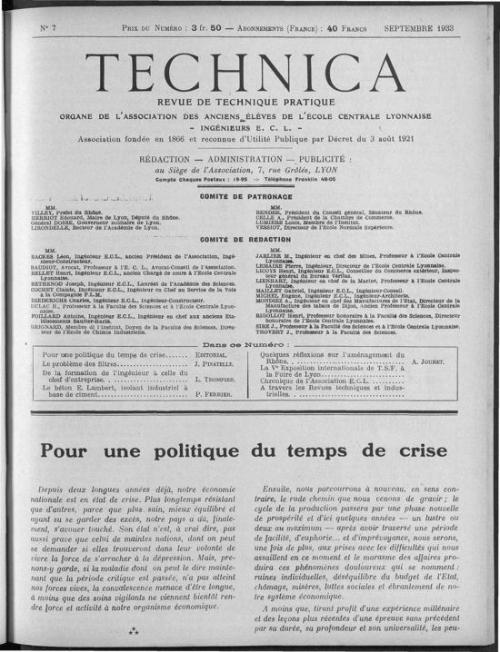 Association des Anciens Elèves de l'Ecole Centrale, Septembre 1933, 82 pages