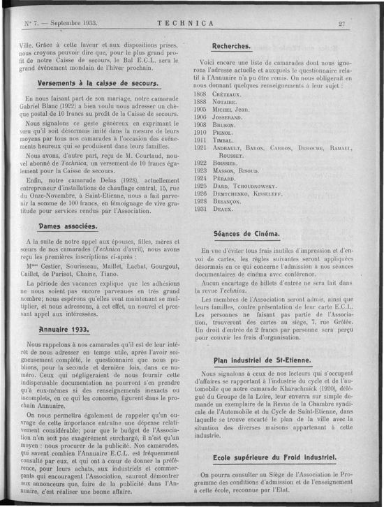 Association des Anciens Elèves de l'Ecole Centrale, Septembre 1933, 82 pages