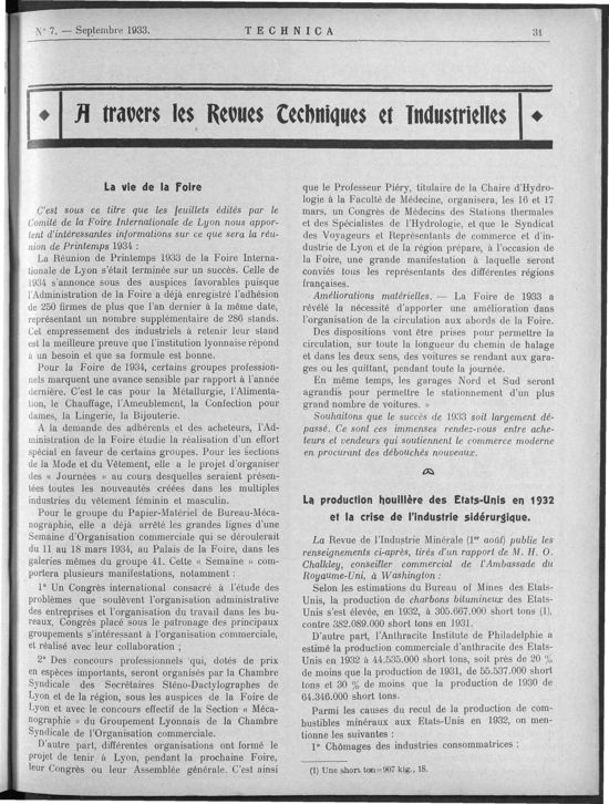 Association des Anciens Elèves de l'Ecole Centrale, Septembre 1933, 82 pages